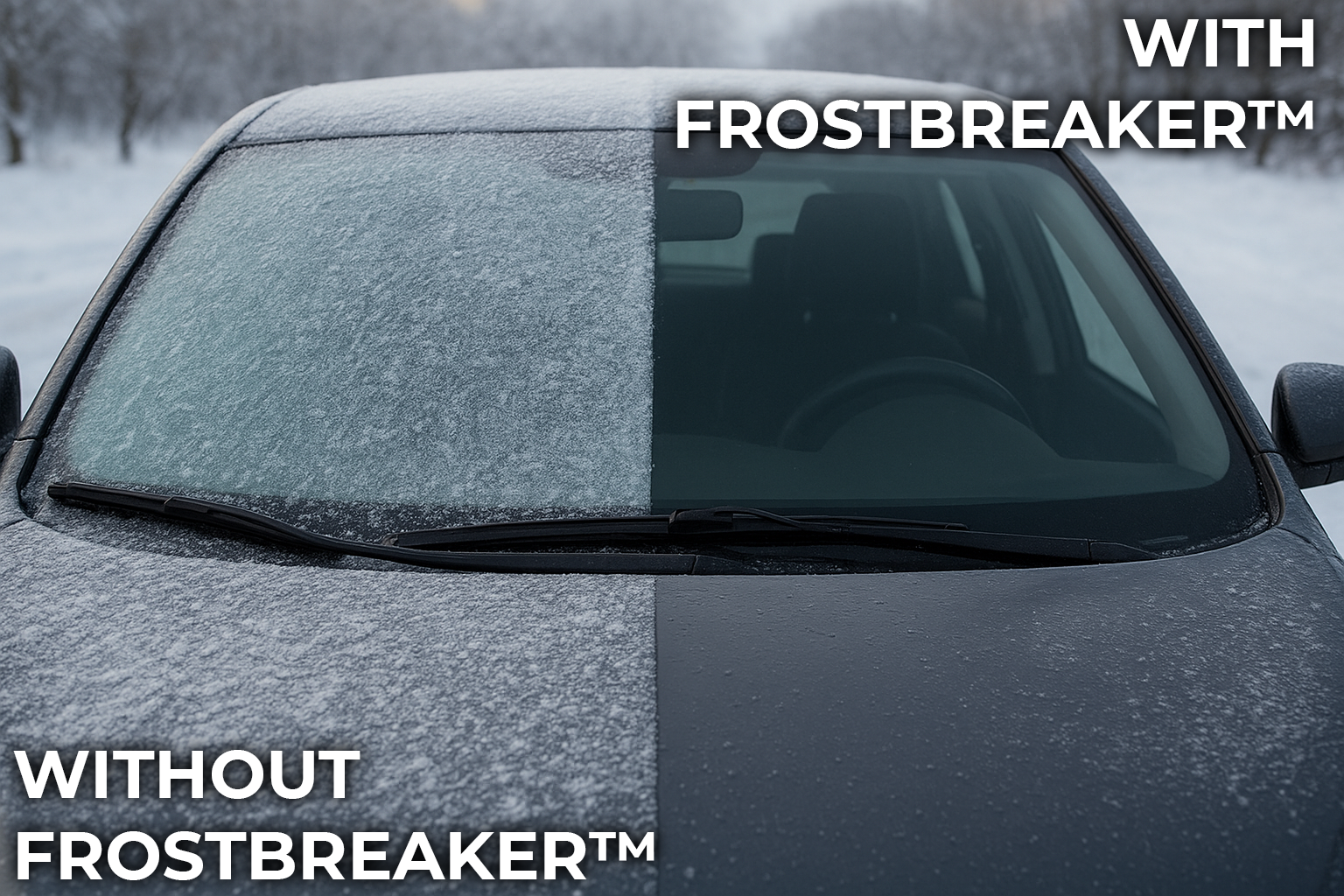 Frosted, icy, or snow-covered windows aren’t just inconvenient – they’re a risk to your safety and visibility. Don’t settle for scraping or temporary fixes that only remove the surface frost. FrostBreaker™ is the only solution you need to keep your windows clear, safe, and fully protected – instantly and throughout the winter.