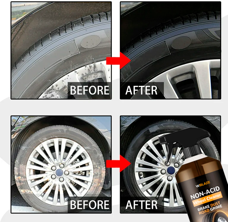 Cleans & Shields in One Step – WheelBlaze™ effortlessly breaks down brake dust, oil, and stubborn grime, then forms a durable, invisible layer that actively repels moisture, dirt, and corrosion - helping your wheels stay cleaner, shinier, and protected for much longer.